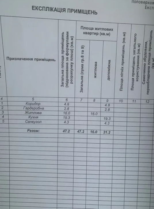 -Загальна площа 47.2 кв.м;