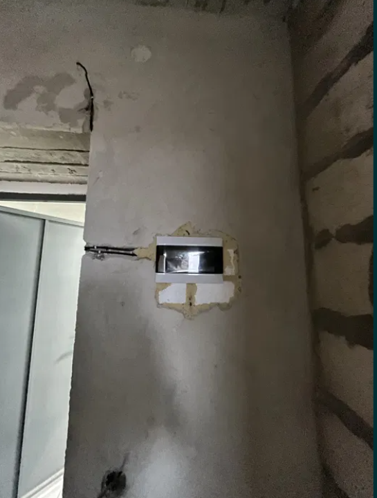 -Стан після будівельників, розводка електрики ( мідна трьохжильна) штукатурка цегляних стін, вхідні двері, котел.