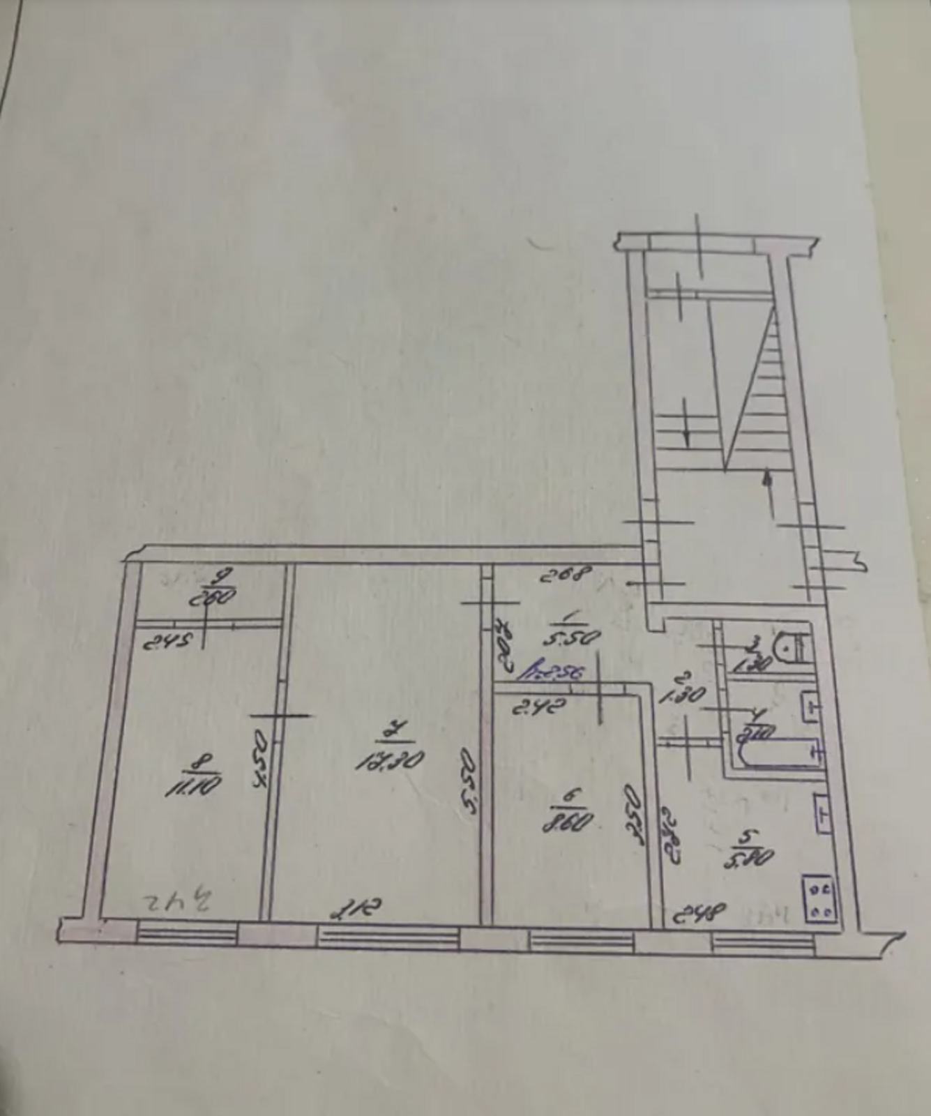 Площа квартири 55, 6 м2 - житлова 37 м2, кухня 5, 8, санвузол роздільний, оздоблений керамічною плиткою, коридор 5, 5.