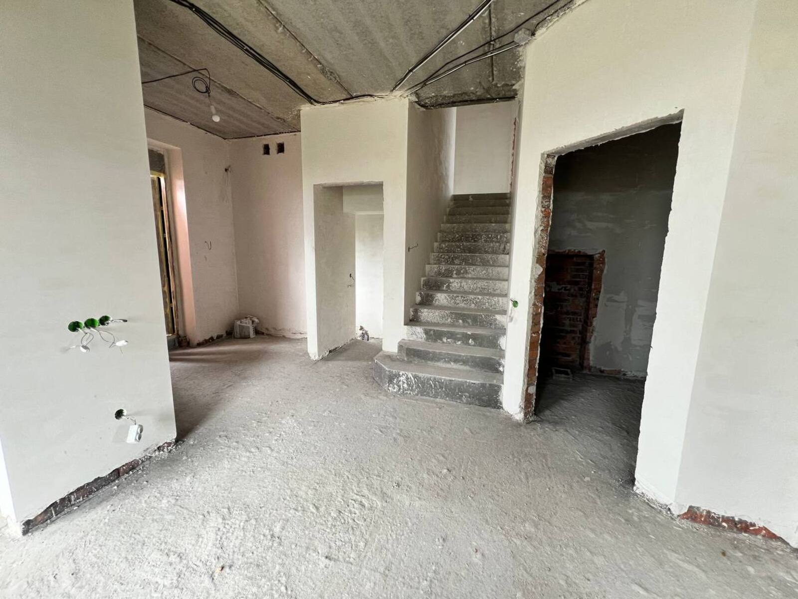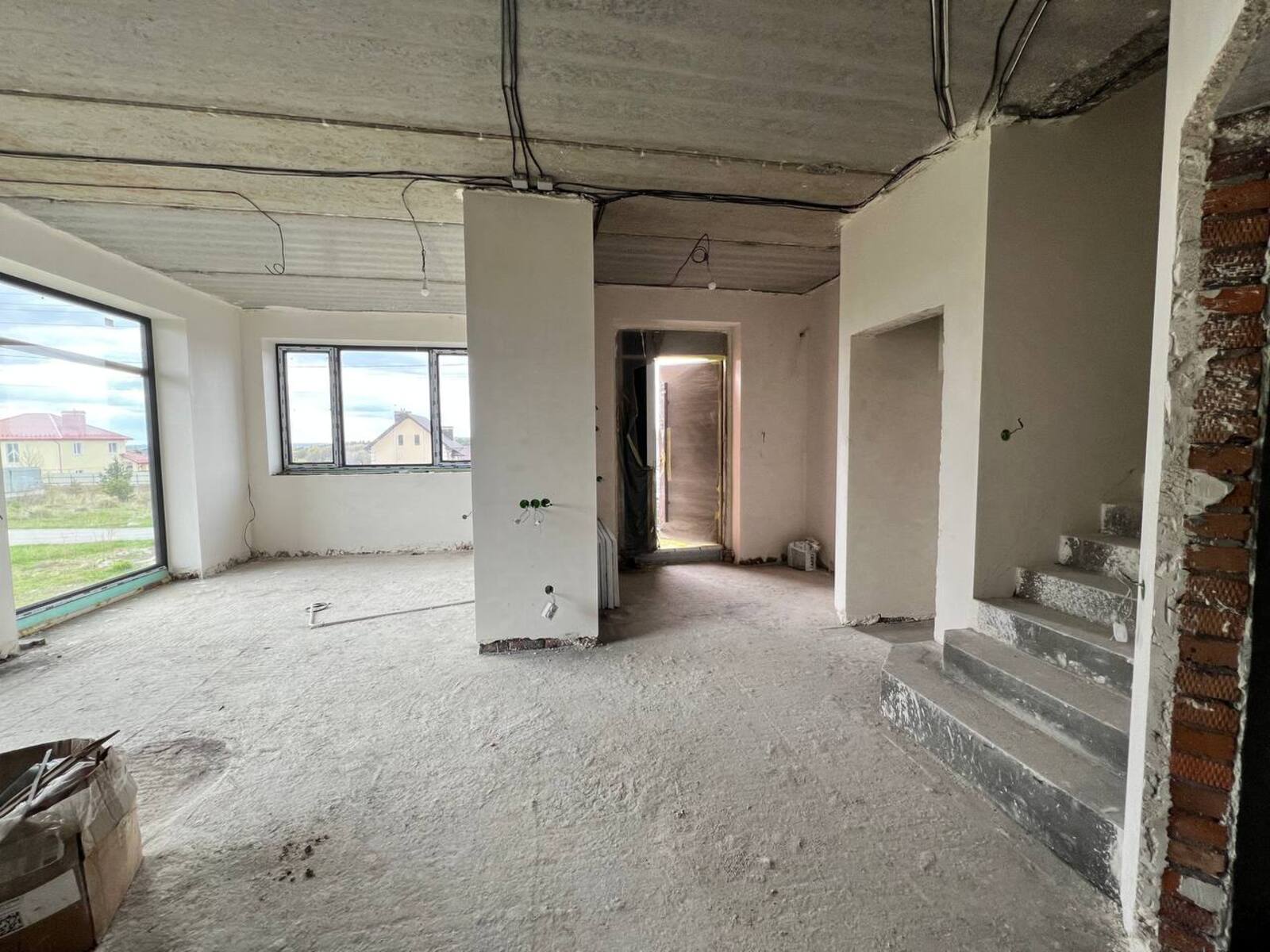 Оздоблення: чистова штукатурка, готова до фарбування; панельне перекриття 1‑го та 2‑го поверхів; утеплення й стяжка на горищі.