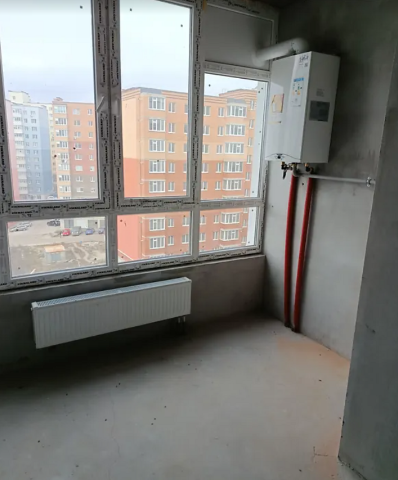 Максимально зроблені чорнові роботи - стяжка, штукатурка стін, розводка опалення та електрики